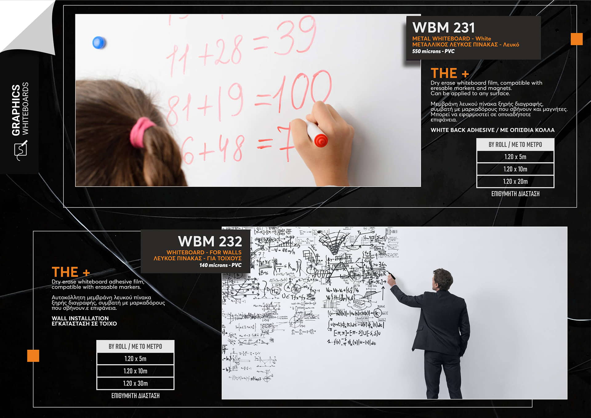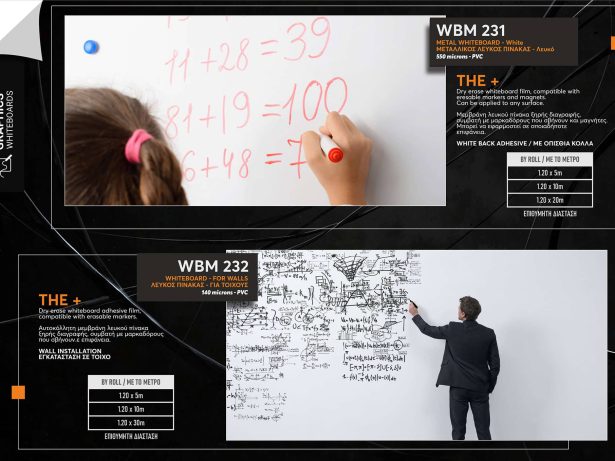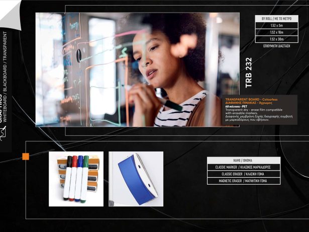 Λευκός πίνακας αυτοκόλλητος, ξηρής διαγραφής, συμβατός με μαρκαδόρους που σβήνουν πανεύκολα.